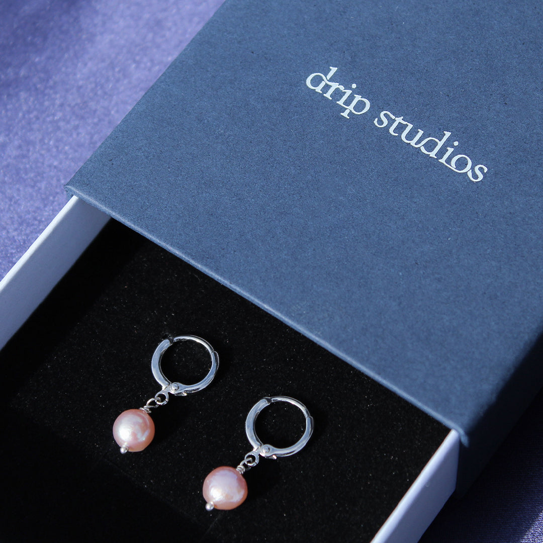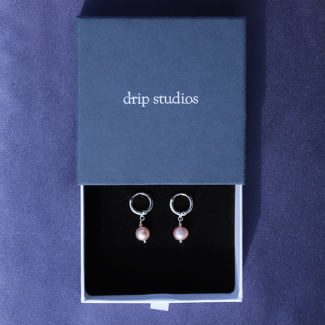 The Sunset Huggers are made with Fresh Water Pearls and Sterling Silver.